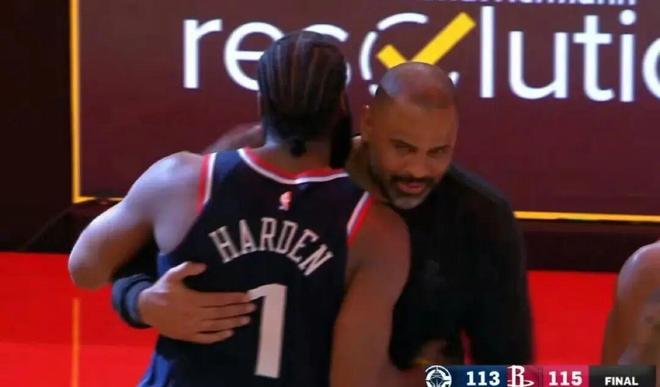 赛后,乌杜卡抱着哈登不知道在说什么